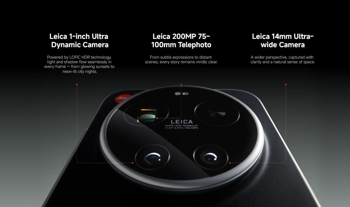 在影像方面,它搭载了与Xiaomi 17 Ultra相同的旗舰级徕卡联合开发的三摄系统。这套系统包括一颗50MP的徕卡1英寸主镜头(Light Fusion 1050L传感器),支持LOFIC HDR;一颗50MP的超广角镜头(1/2.75英寸三星JN5图像传感器);以及一颗200MP的长焦镜头(1/1.4英寸三星HPE图像传感器),焦距范围为75-100mm(3.2倍—4.3倍)。
