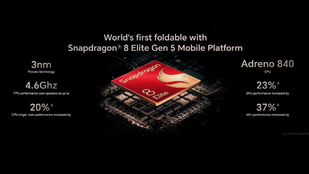 此外,Honor Magic V6搭载了高通最新的骁龙(Snapdragon)8 Elite Gen 5移动芯片,并配备16GB的LDDDR5X RAM和512GB的UFS 4.1高速储存空间。