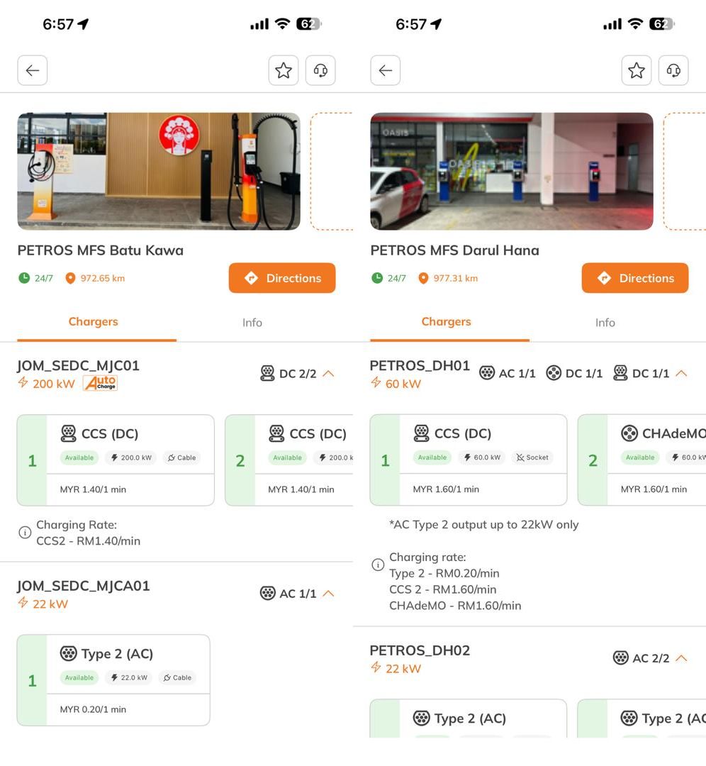 有趣的是,SEDC Energy与JomCharge合作在Petros MFS Hana提供的60kW直流充电桩的收费更高,为每分钟1.60令吉。30分钟的充电费用为48令吉,相当于每千瓦时1.60令吉。