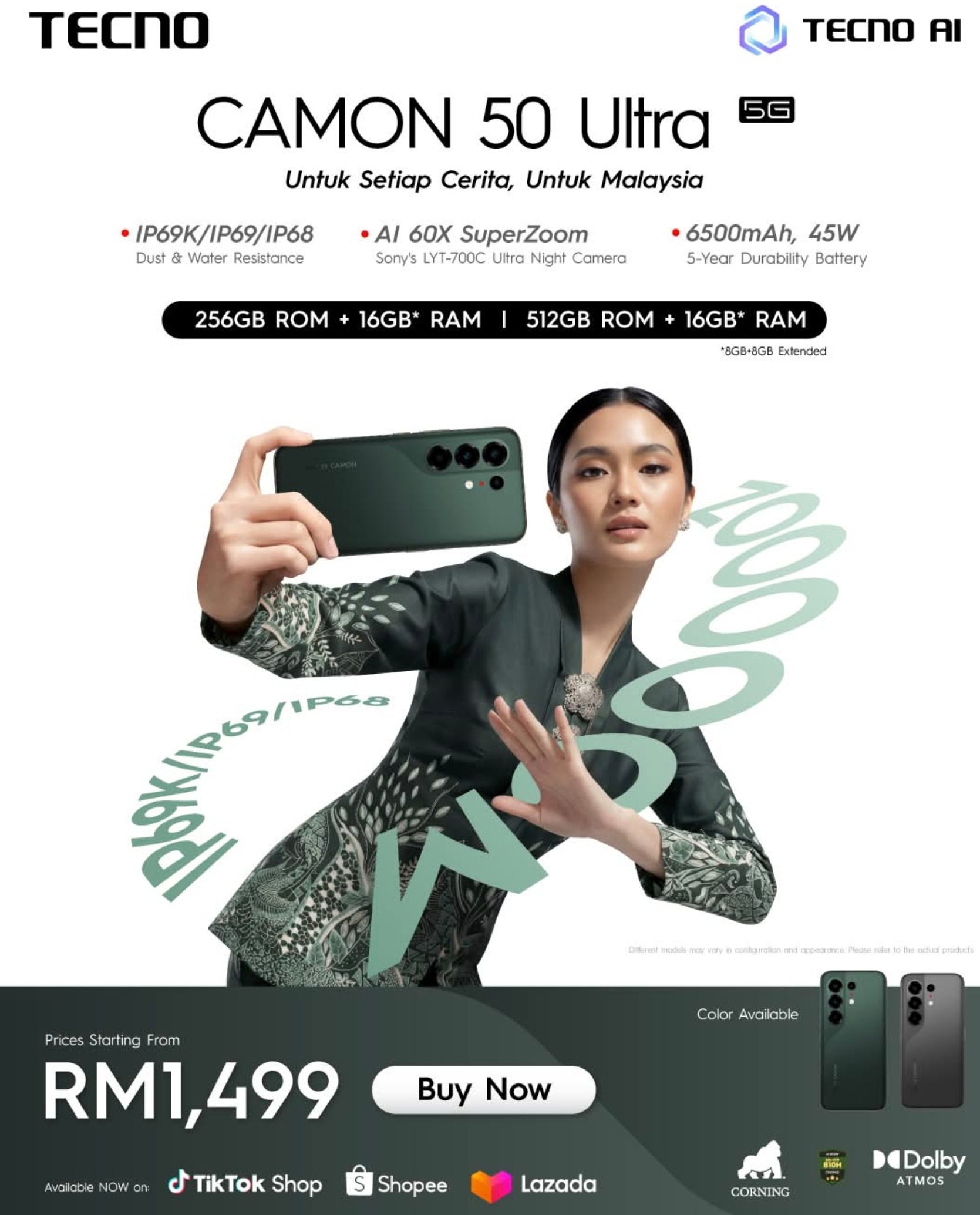 - Camon 50 Ultra(8GB RAM + 256GB 存储空间)— 1499令吉