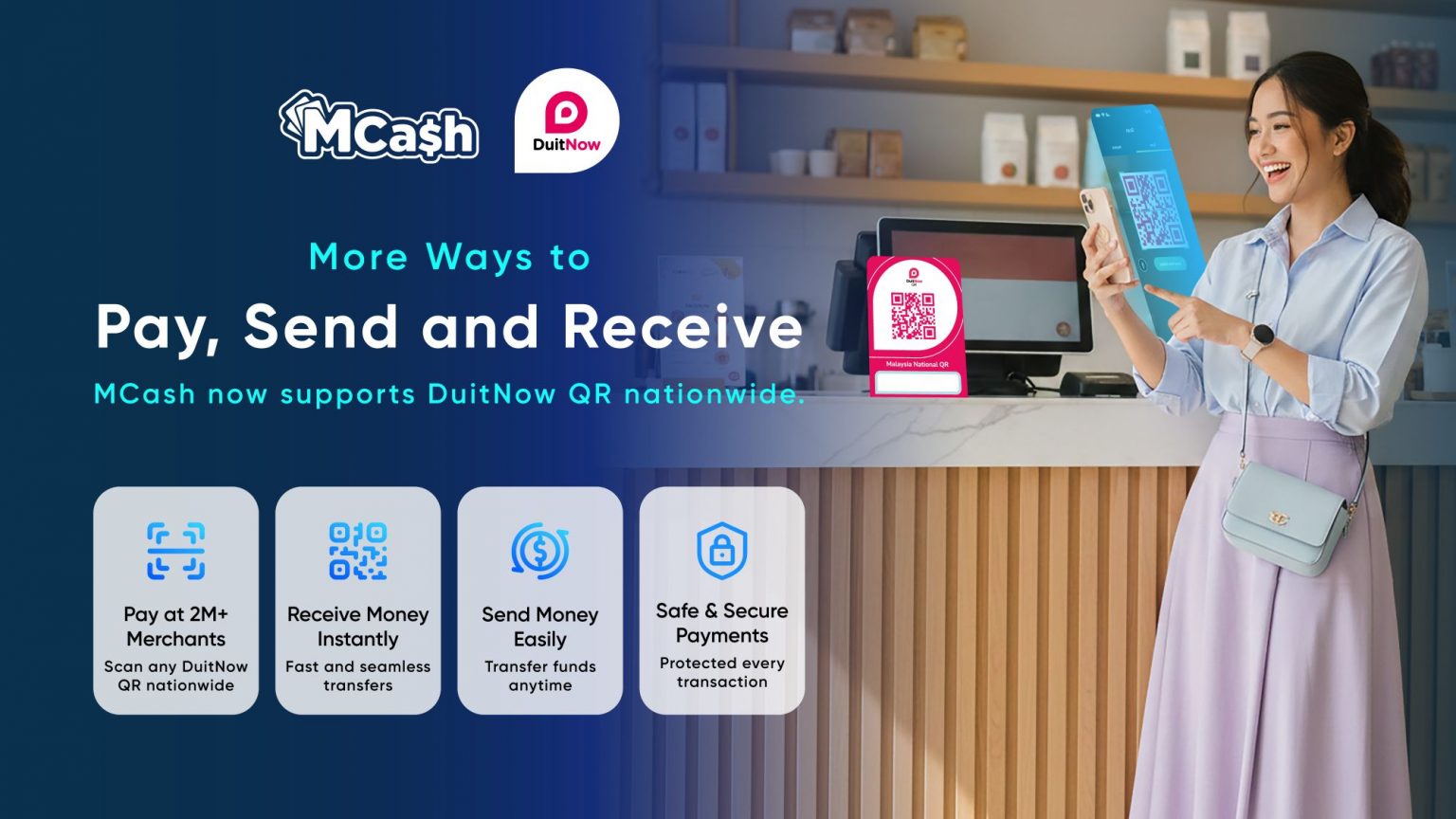 MCash宣布,已直接参与Payments Network Malaysia(PayNet),让全国用户可使用DuitNow QR支付及DuitNow转账功能。这项举措标志着MCash从原本相对独立的电子钱包生态,迈向融入马来西亚更广泛的互通支付体系。