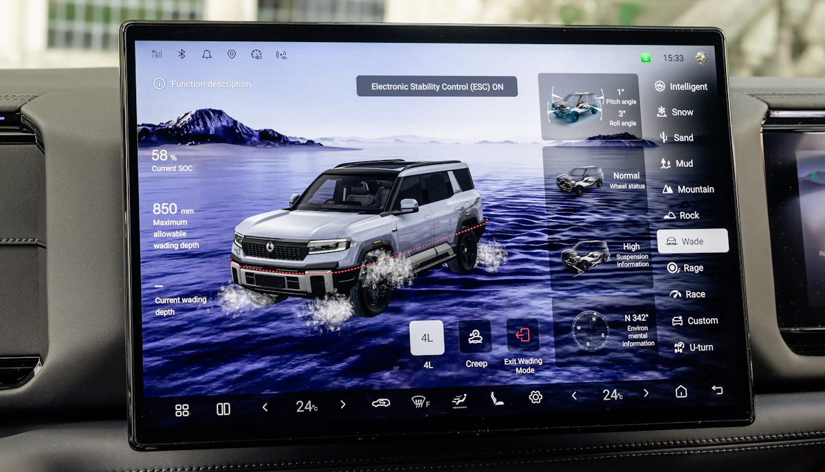 综合输出达425kW(570马力)与760牛米扭矩。腾势表示,B8可在4.8秒内完成0至100公里/小时加速,极速为180公里/小时,并具备3.5吨拖曳能力。