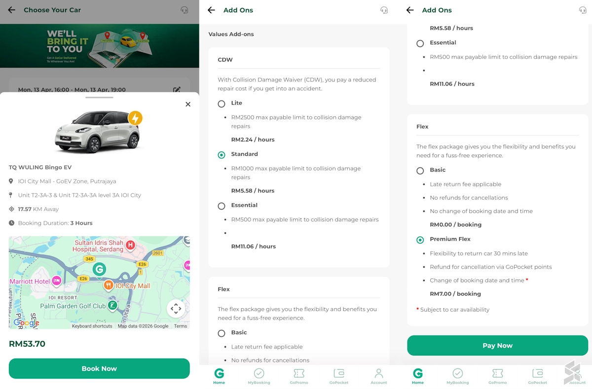 然而,4月14日我们再次搜索这款电动车时,发现了两个新增地点——吉隆坡中环车站(KL Sentral)和 GoCar Seri Kembangan Hub。因此,目前尚不清楚GoCar的GoEV车队中新增了多少辆Bingo,但我们估计至少有4辆。