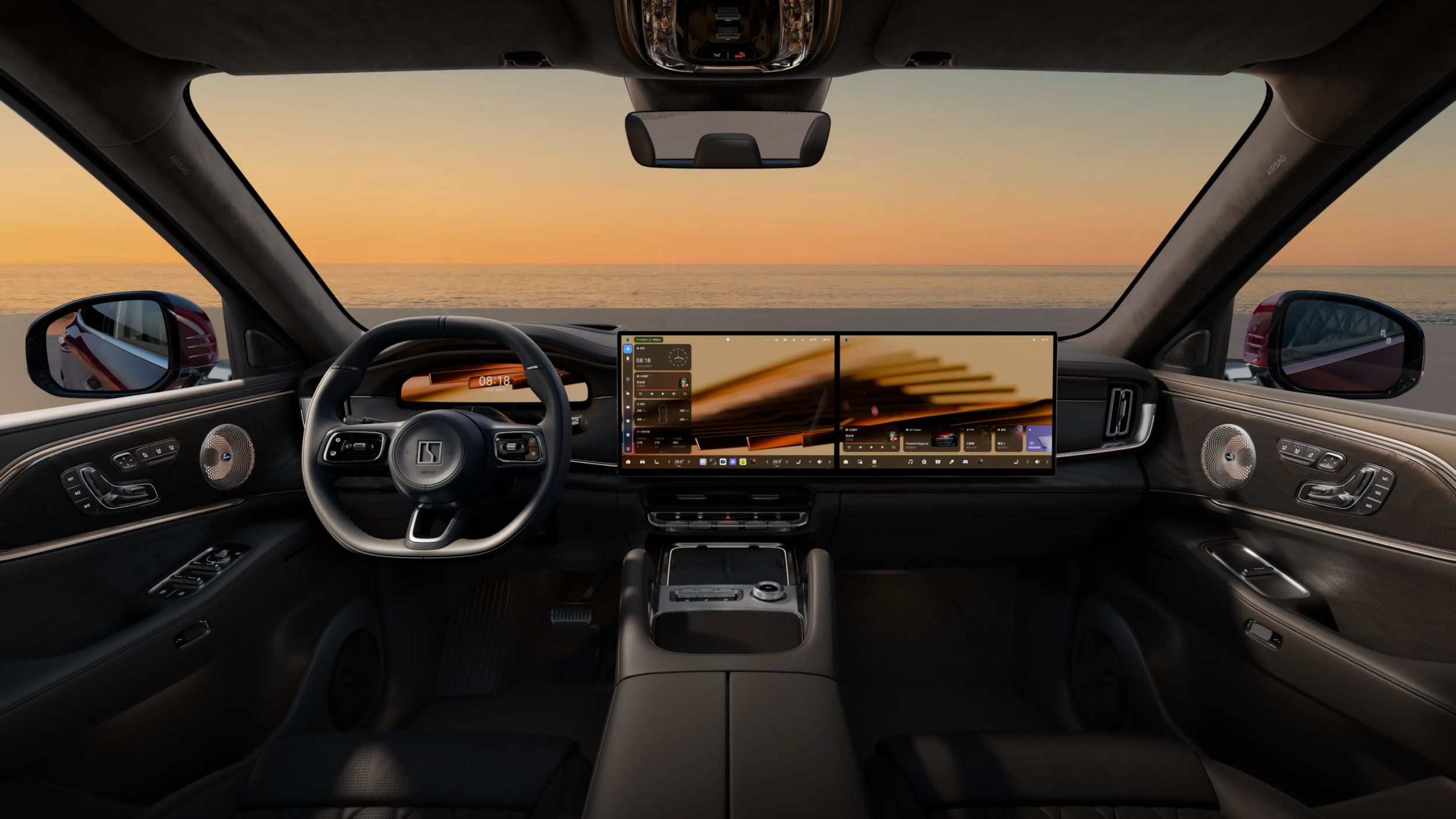 正如你对极氪的预期一样,Zeekr 8X配备了众多高端功能和配置。前排可选装两块16英寸3.5K Mini-LED屏幕、一块44英寸AR-HUD抬头显示器以及一块17英寸3K OLED车顶屏幕,供后排乘客使用。此外,还配备了车载冰箱、后排电动隐私遮阳帘以及一套21扬声器的Naim音响系统。